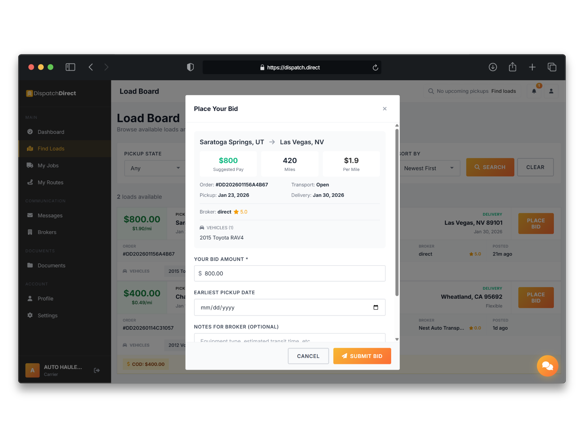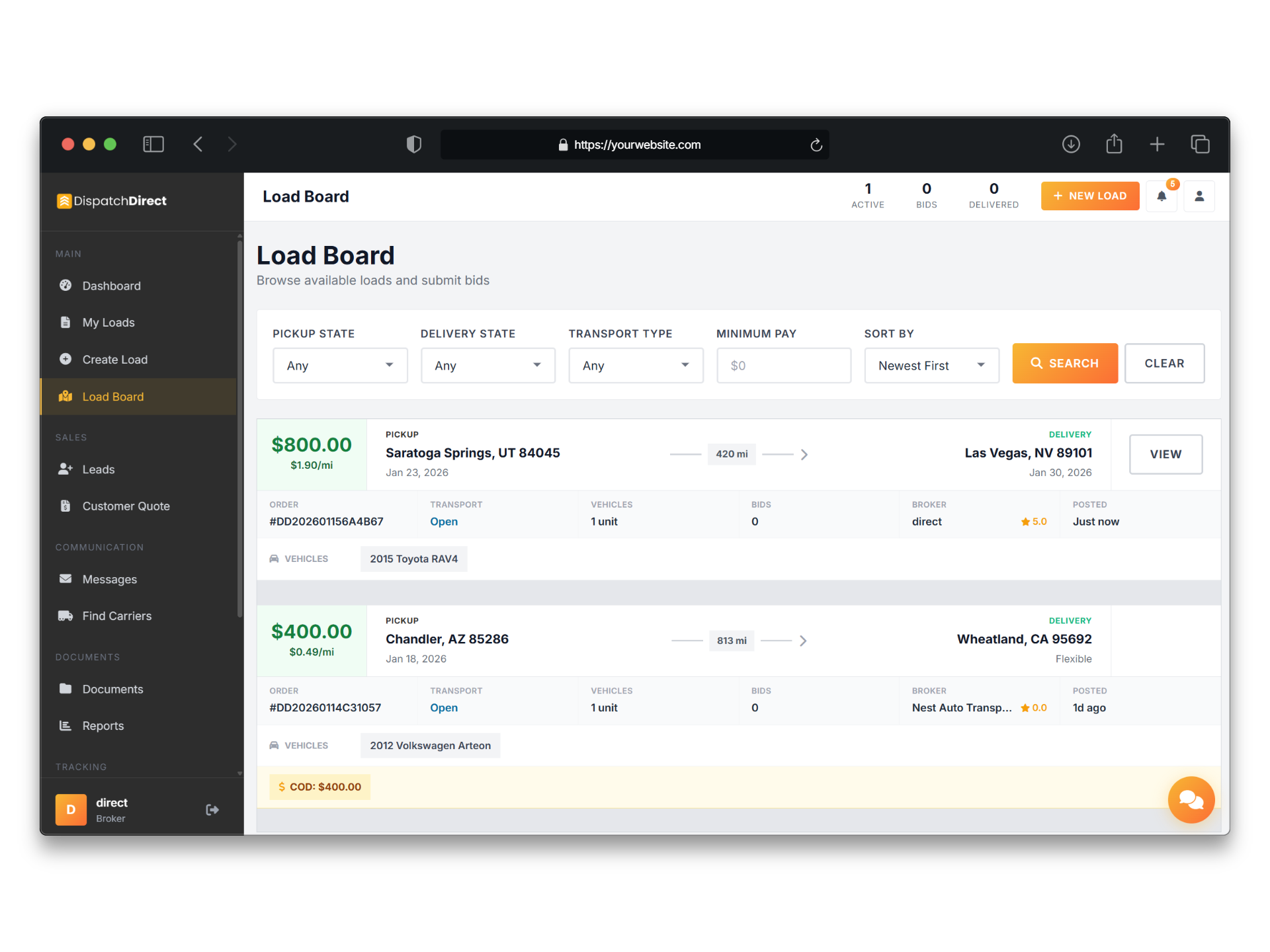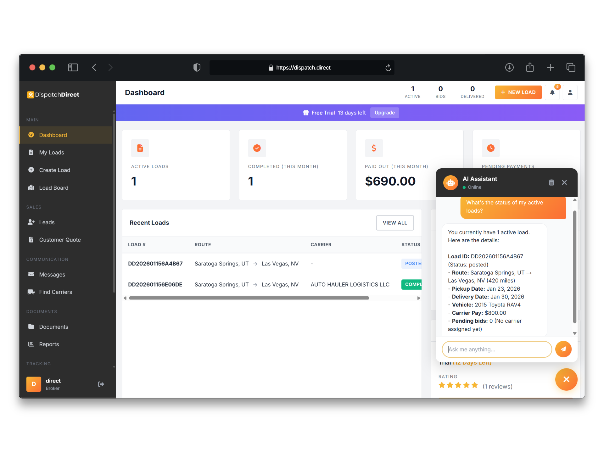 - Unlimited loads — Post as many as you want, no per-load fees