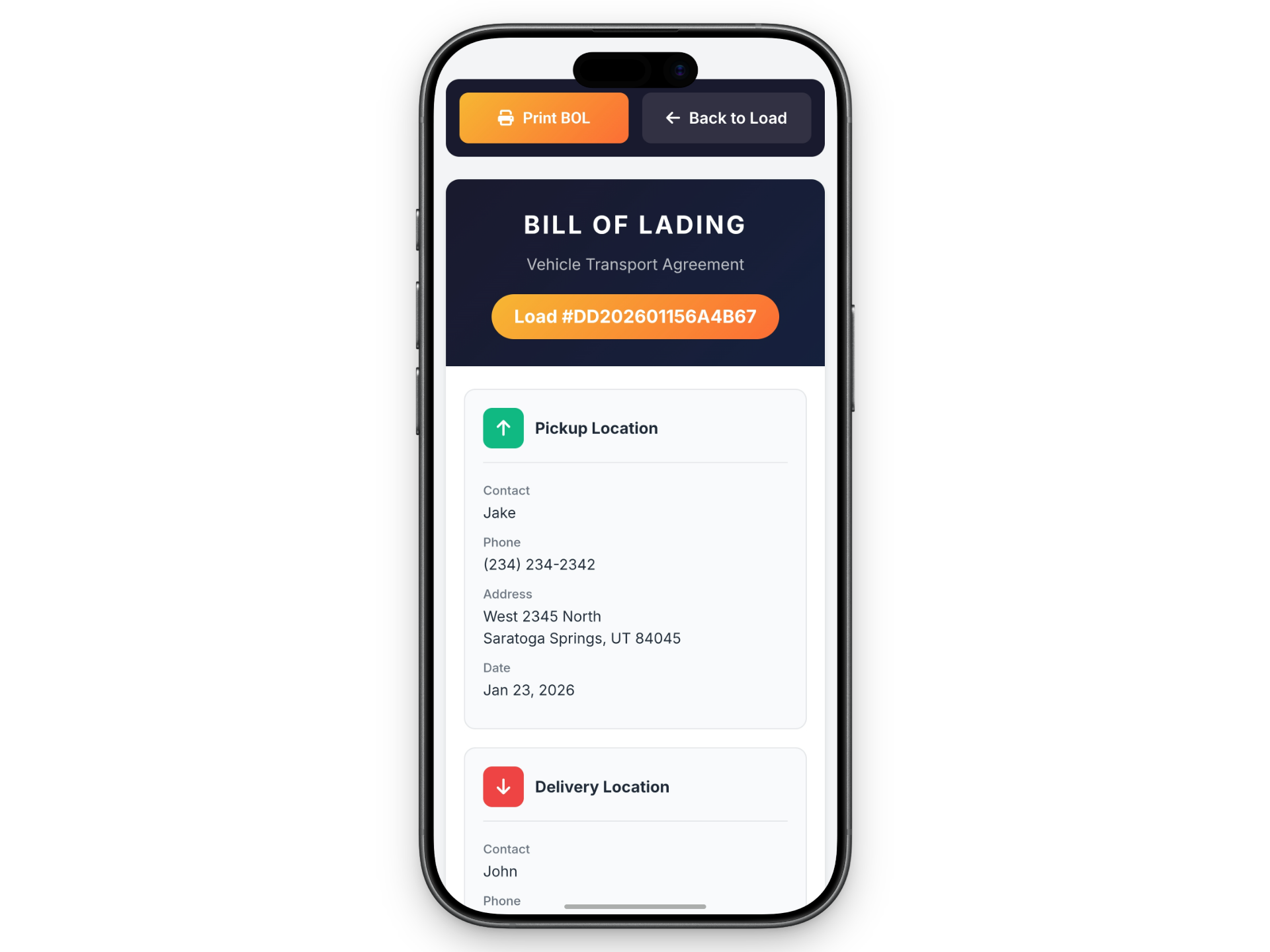 - Carrier management — Track assignments, payments, and ratings